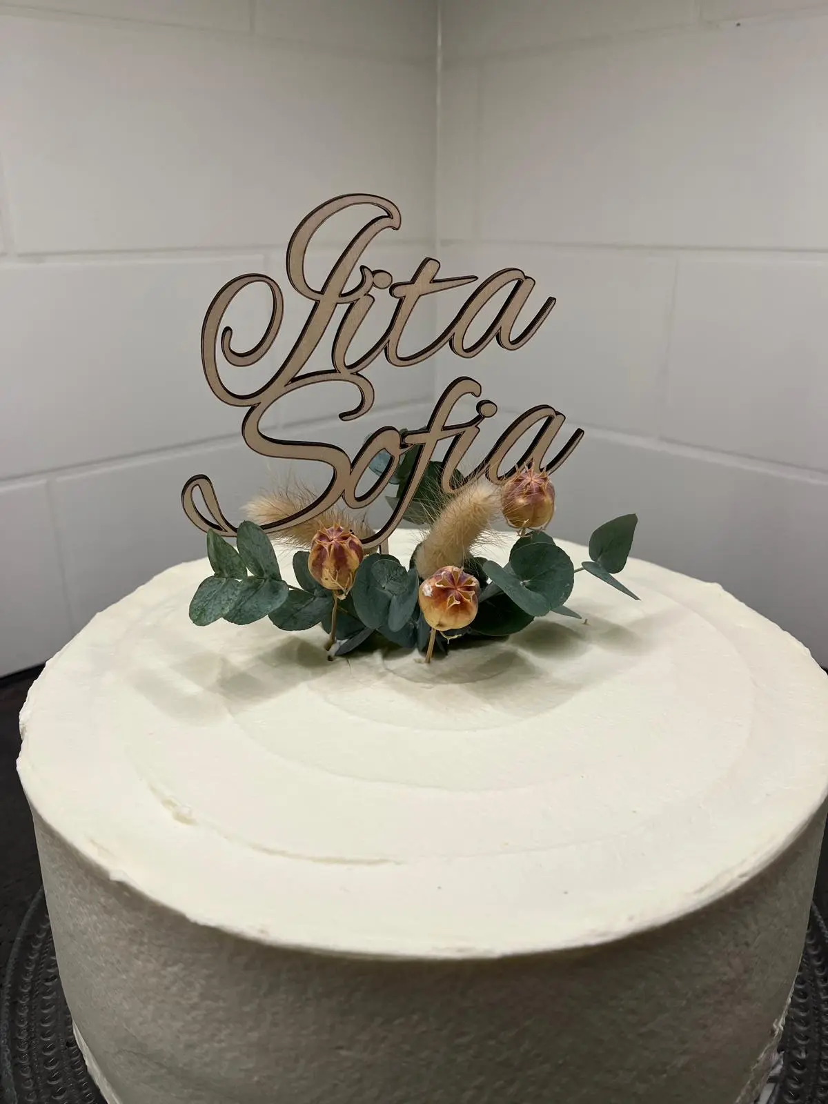 Kakkukoriste omalla tekstillä tai nimellä on erinomainen vaihtoehto esimerkiksi ristiäisiin tai muihin juhliin.